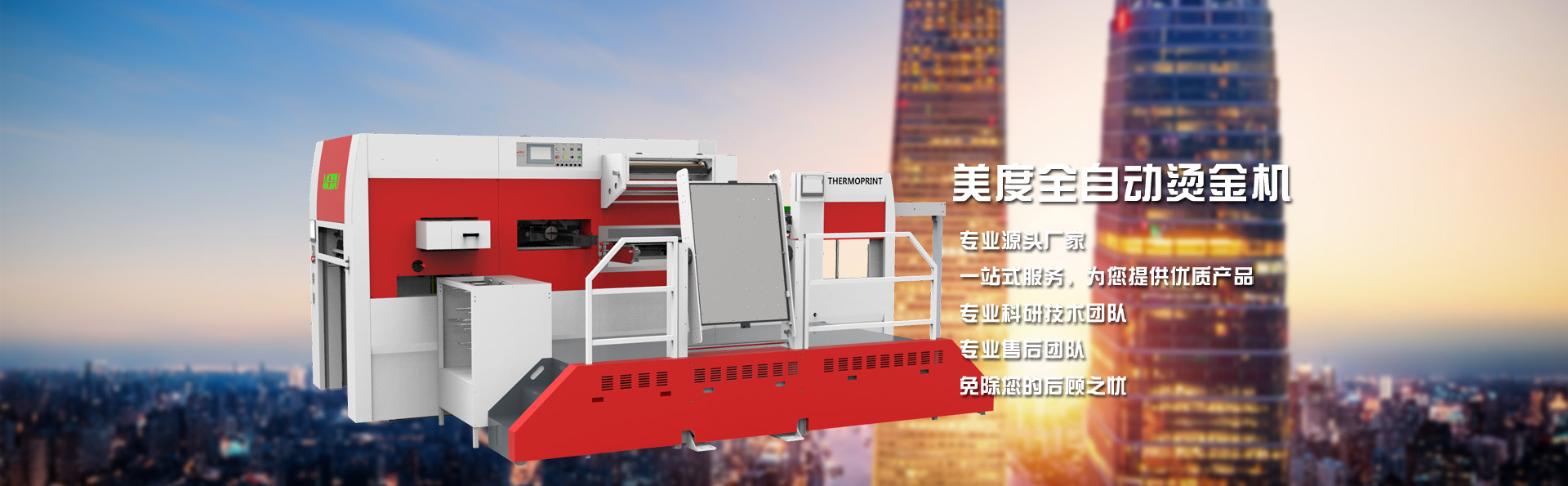 全自動燙金機,壓紋機廠家,模切機-山東美度印刷設備有限公司山東美度印刷設備有限公司是一家從事機械研究和制造的企業,主要產品包括全自動平壓平三縱燙金機、全自動平壓平三縱兩橫燙金機、全自動平壓平深壓紋模切機、全自動平壓平深壓紋燙金機、全自動平壓平模切機等系列產品。經過多年的發展,公司現已擁有多名的工業研發設計人員、經驗豐富的生產安裝人員及嚴謹認真的質量檢驗人員,從外購件檢驗、零部件加工、整機裝配、出廠檢驗等各個流程均有嚴格質量保證,從而保障了所生產設備的品質。